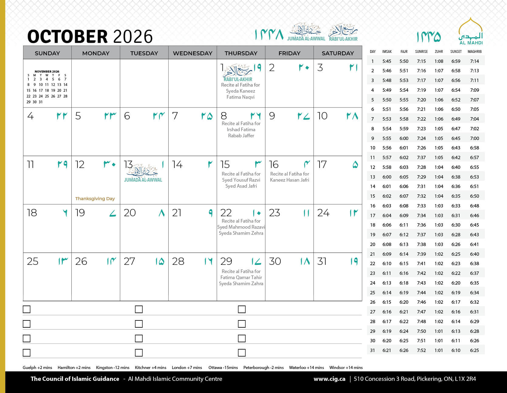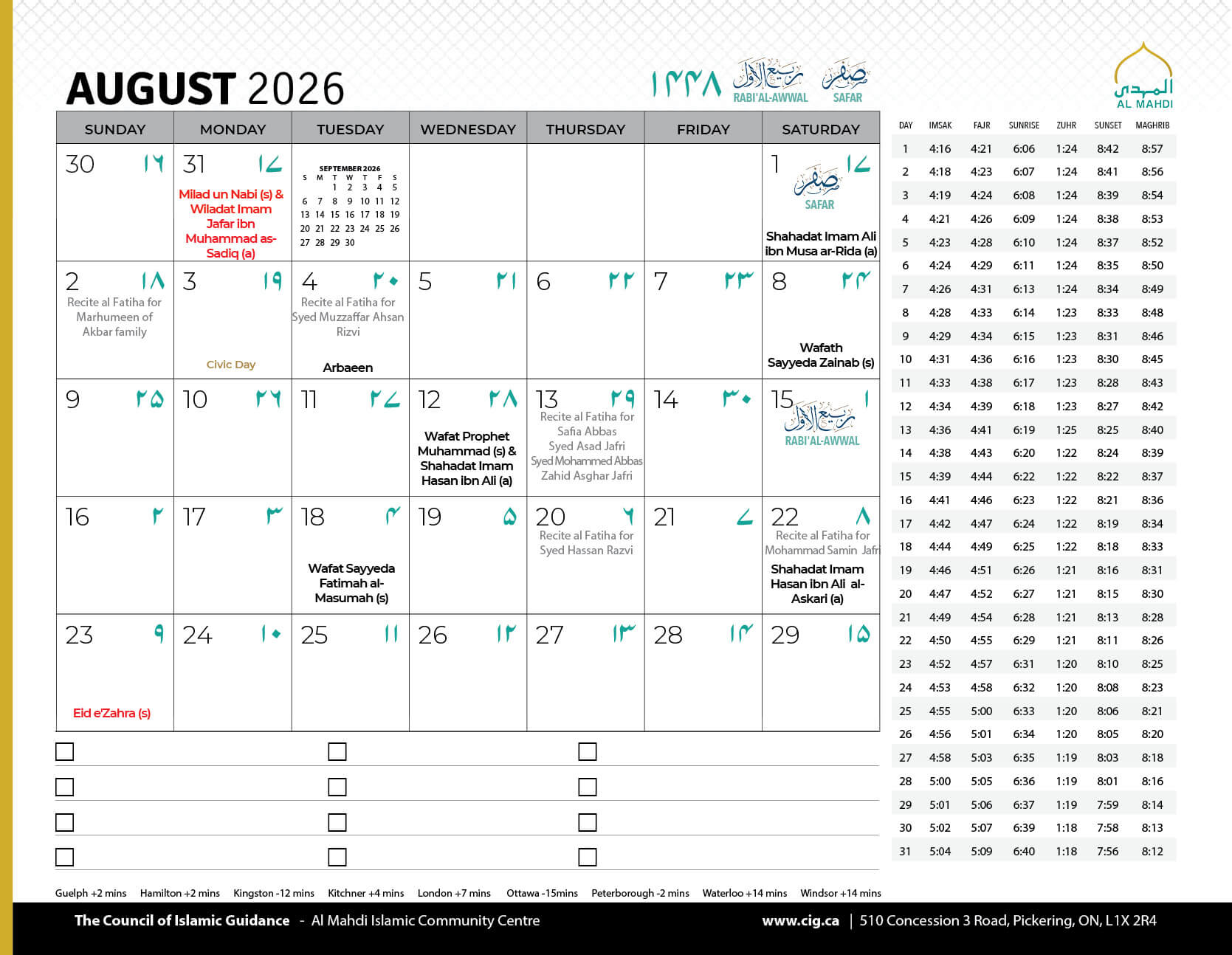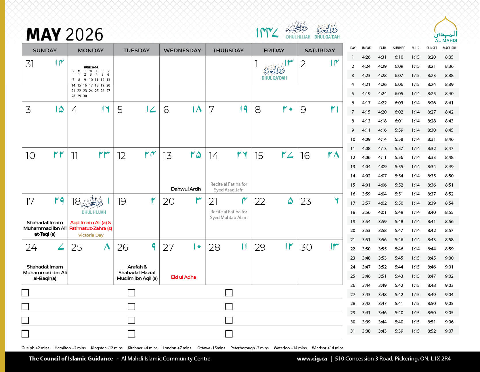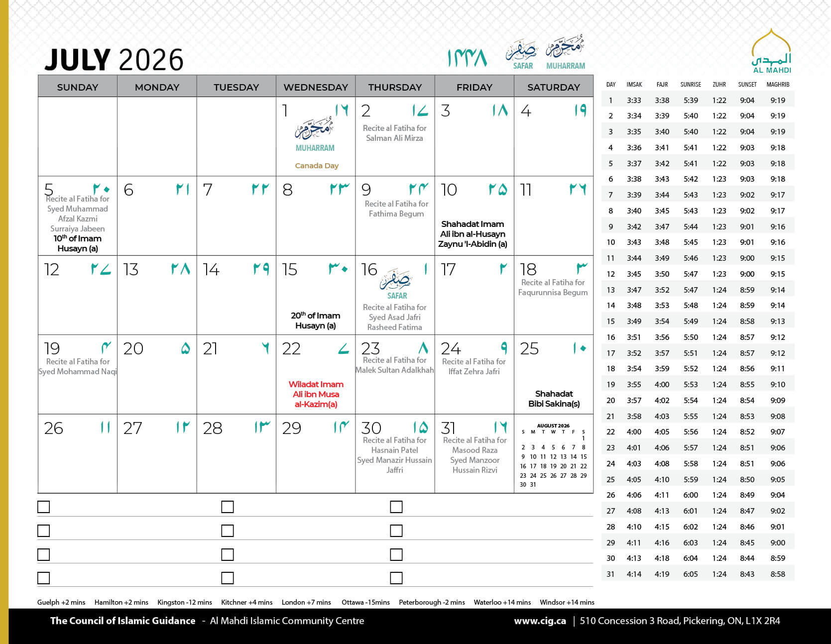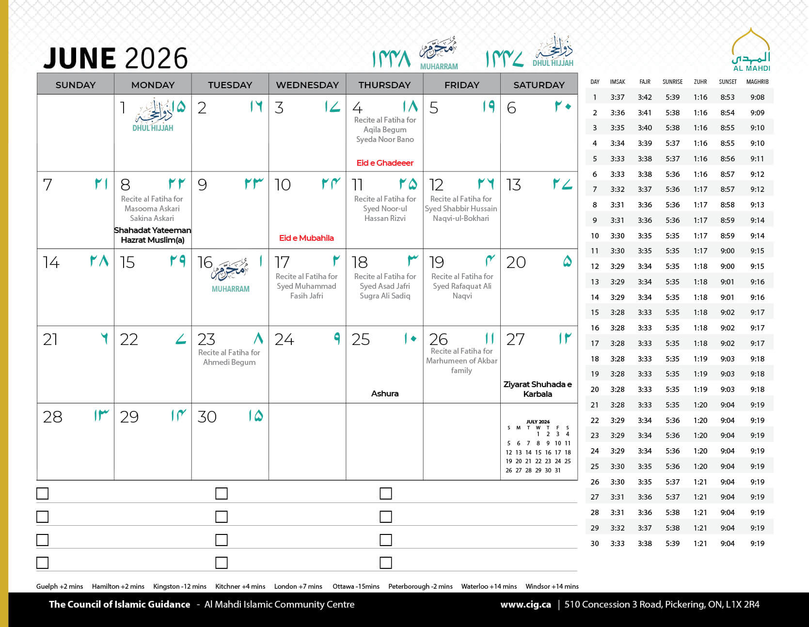 Salamun Alaykum Dear Community Members, As we conclude the first Ashra of Muharram 1447, we humbly thank Allah (SWT) for granting us the tawfiq to mourn the unparalleled sacrifice of Imam Hussain (AS) and his noble companions, and to come together in His remembrance....