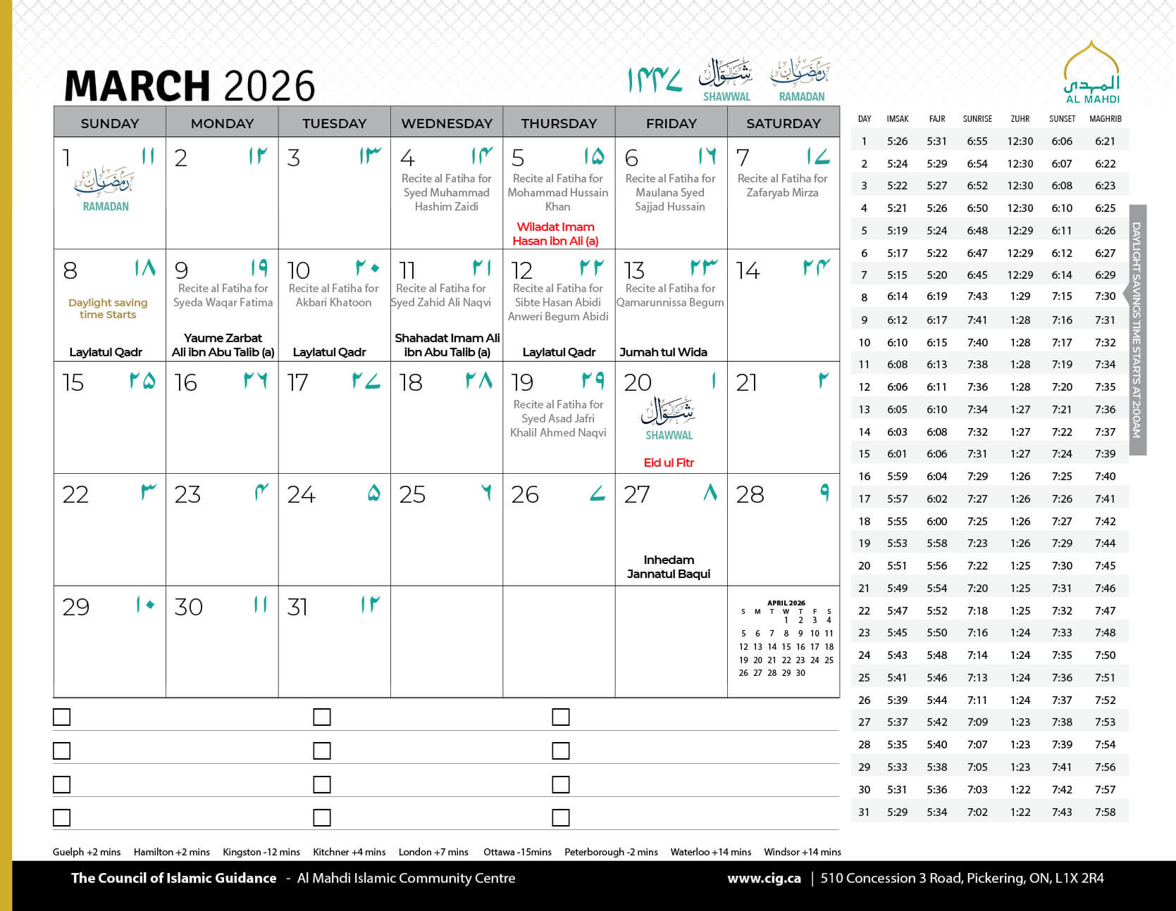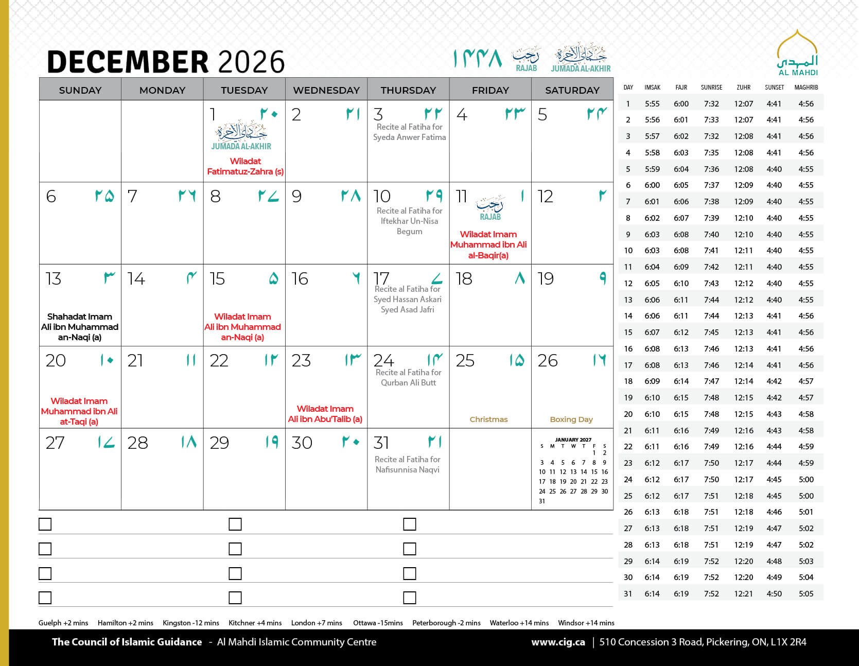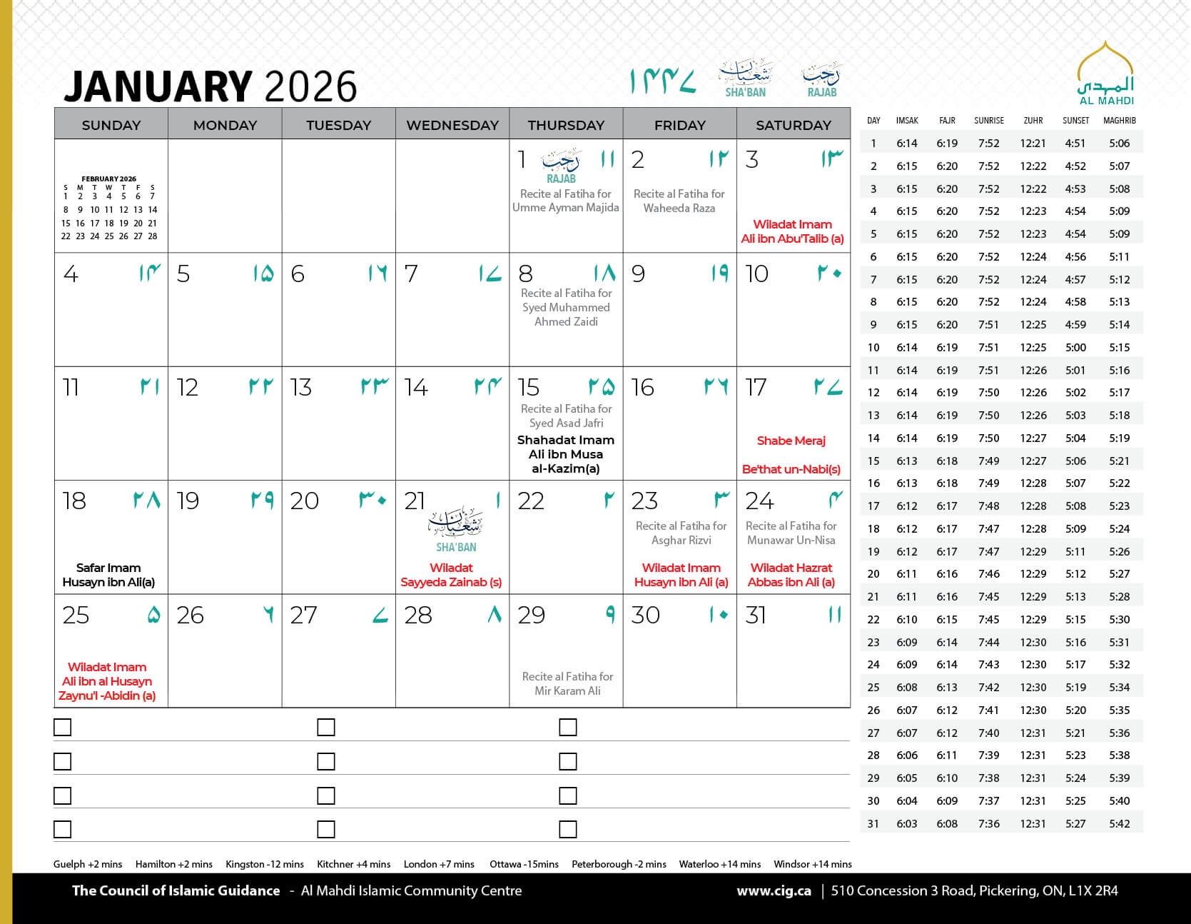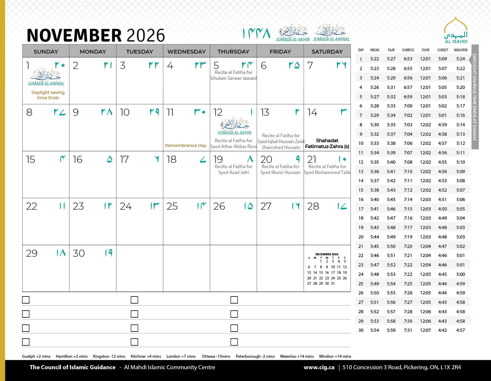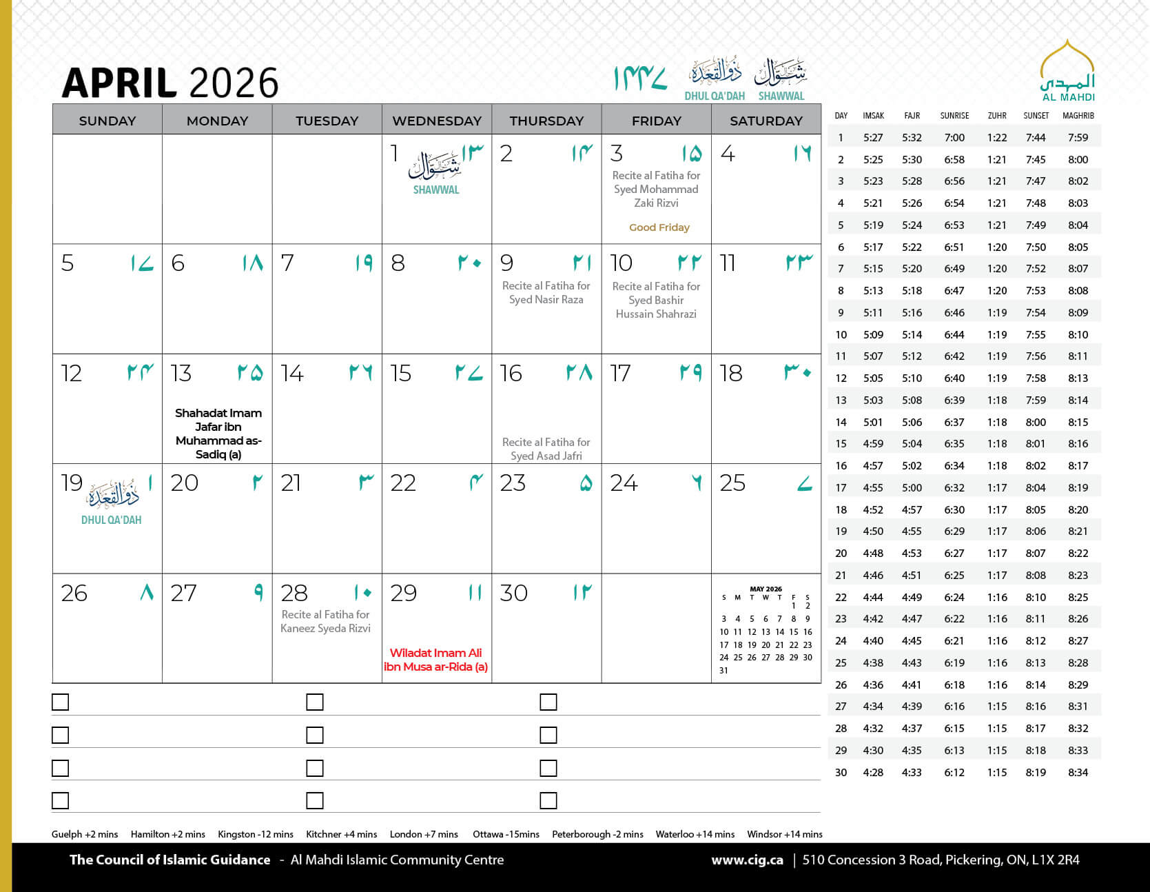 Salamun Alaykum Dear Community Members, As we conclude the first Ashra of Muharram 1447, we humbly thank Allah (SWT) for granting us the tawfiq to mourn the unparalleled sacrifice of Imam Hussain (AS) and his noble companions, and to come together in His remembrance....