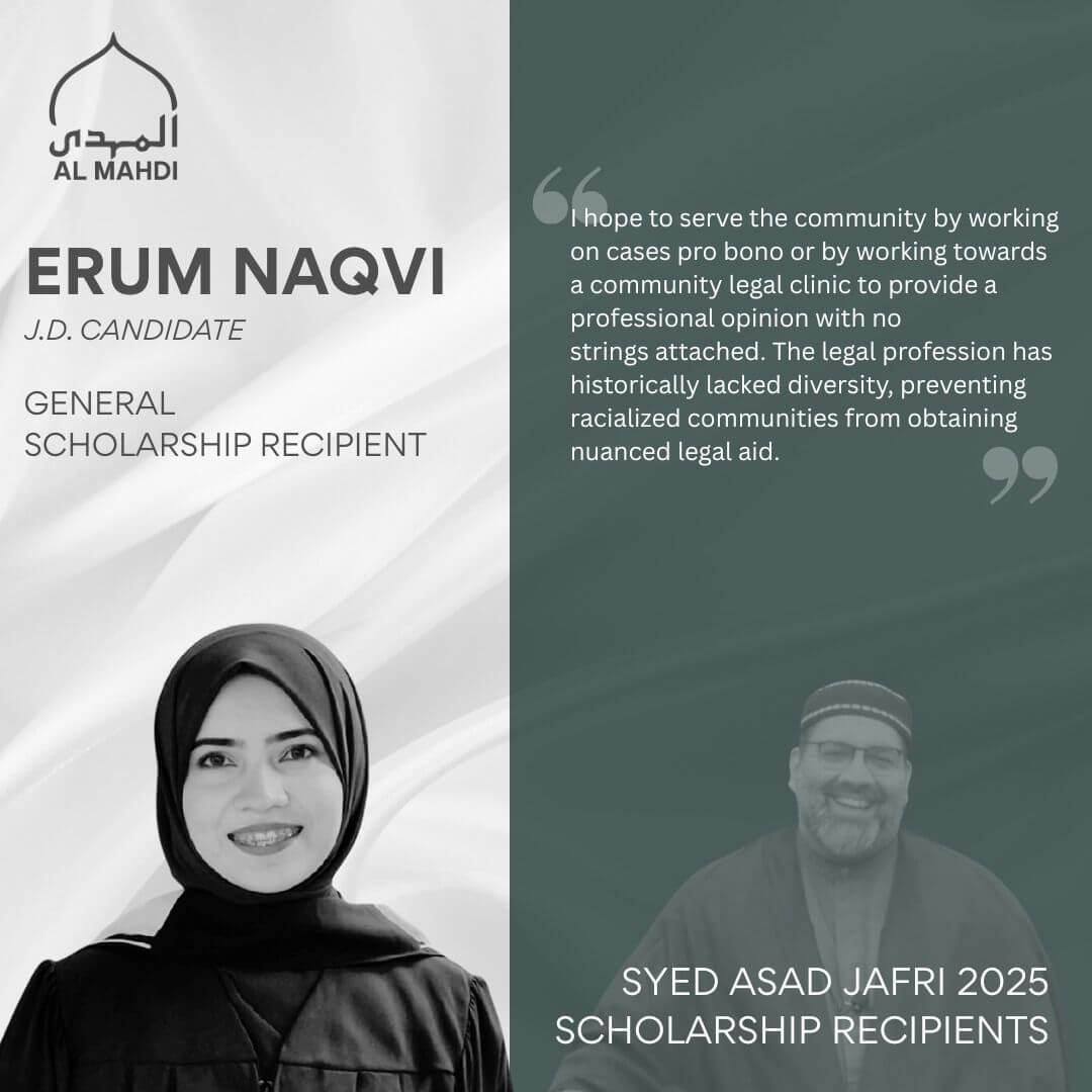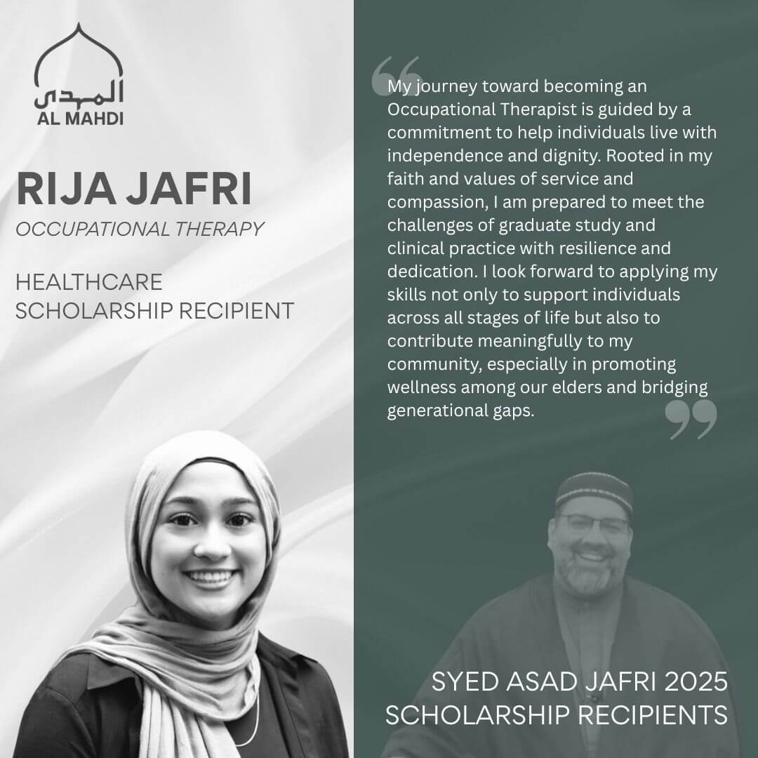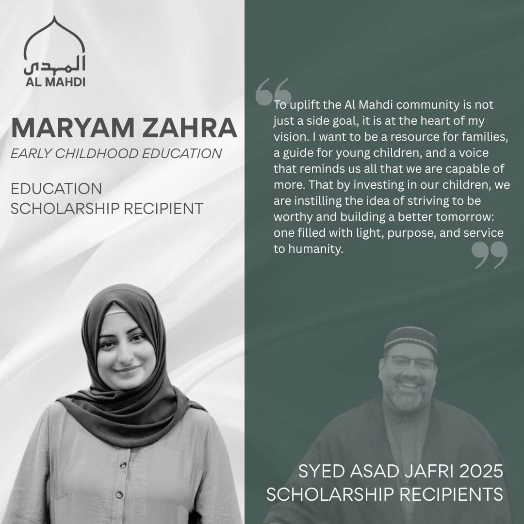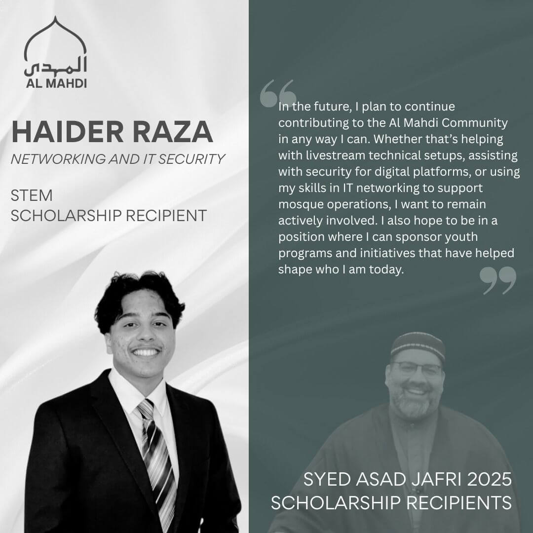 Al Mahdi Islamic Community Centre is pleased to share the recipients of the Syed Asad Jafri 2025 Scholarships.